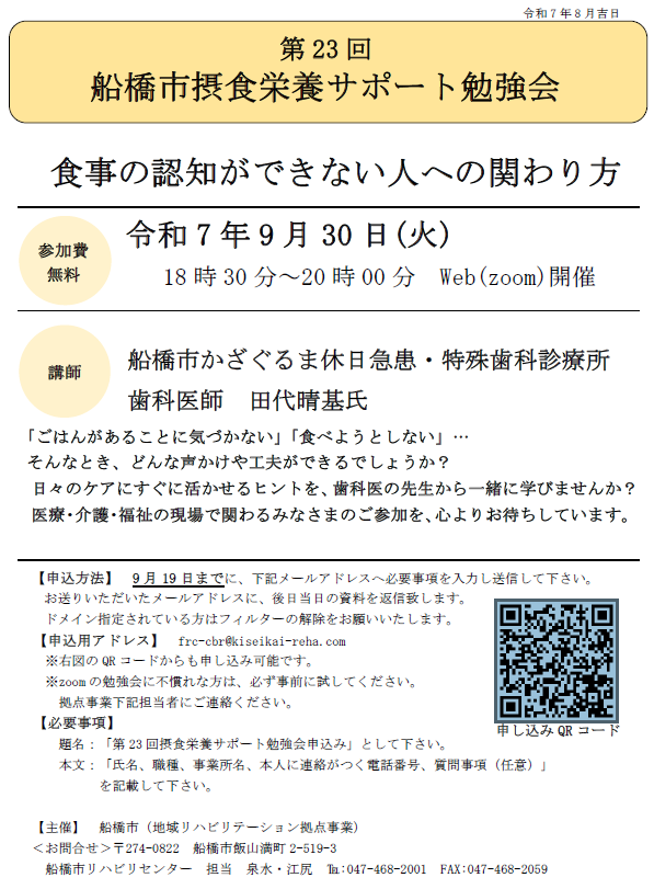 【申込事項】題名:①題名:「第23回摂食栄養サポート勉強会申込み」