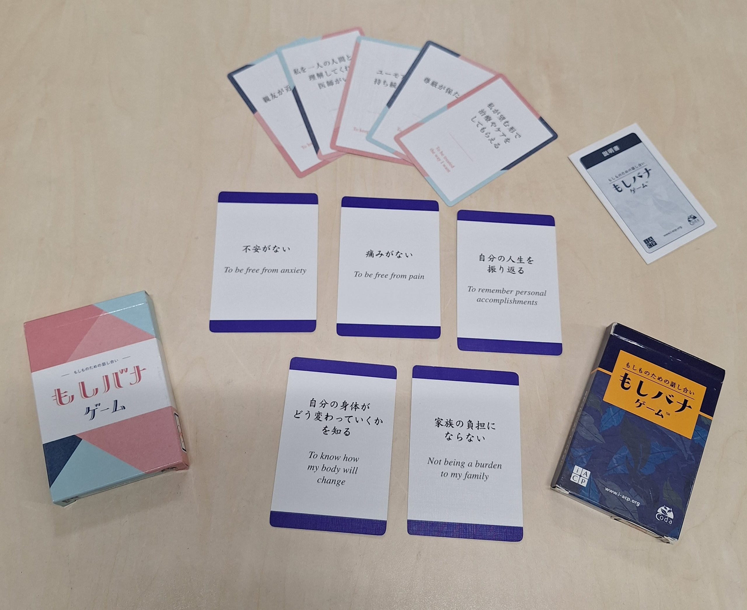 もしバナカードには、老いや病により、人生の最期に、「どのようにケアして欲しいか」「誰にそばにいて欲しいか」等、さまざまな価値観が書かれています。たくさんのカードの中から、自分にとって本当に大切なものを選んでいただき、なぜそれを選んだのかを参加者同士で語り合っていただきます。